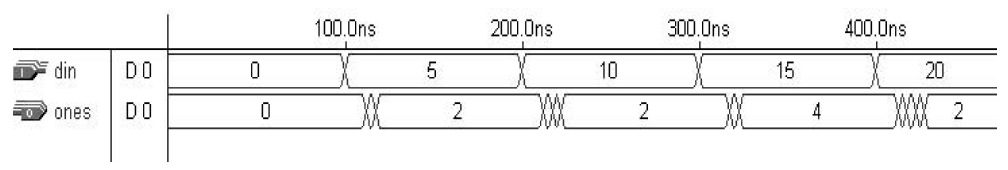 Misalkan kita ingin merancang rangkaian yang menghitung jumlah angka ‘1’ dalam vektor biner. Mari kita pertimbangkan solusi di bawah ini, yang hanya menggunakan sinyal. Kode ini memiliki beberapa penugasan ke sinyal yang sama, temp, pada baris 14 (satu kali) dan baris 17 (delapan kali). Selain itu, karena nilai sinyal tidak segera diperbarui, baris 17 berkonflik dengan baris 14, karena nilai yang ditetapkan pada baris 14 mungkin belum siap hingga proses selesai, yang jika demikian, nilai yang salah akan dihitung pada baris 17. Dalam situasi seperti ini, penggunaan VARIABEL direkomendasikan (Lihat contoh 11.2).
