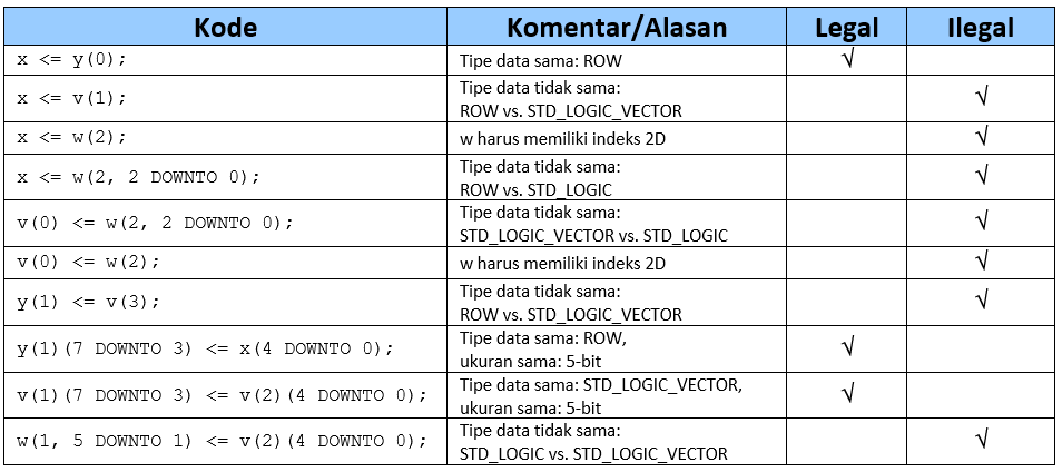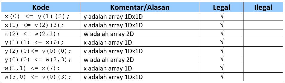 Tabel 7. Contoh operasi array (Legal dan ilegal) – Vector Assignment